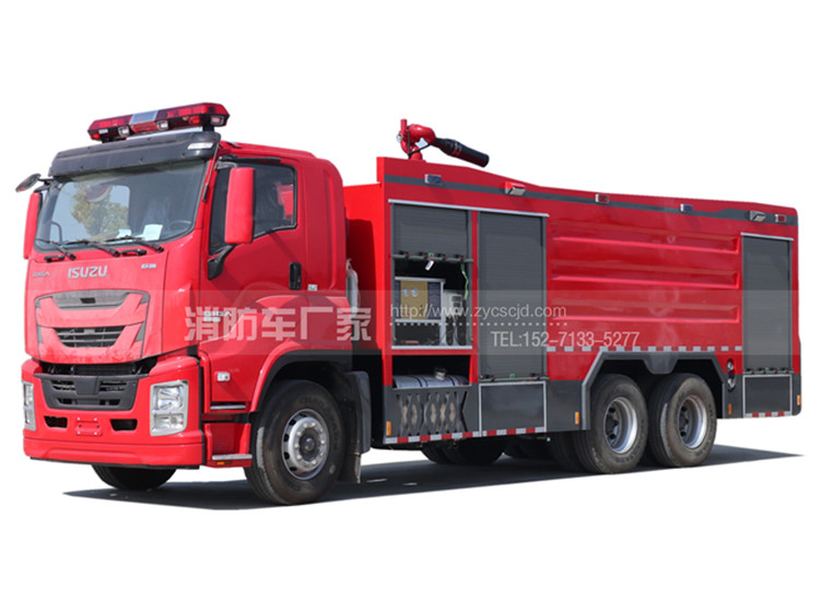 水罐容積8立方、泡沫罐容積2立方,CB10/60消防泵,PL48消防炮,有效射程50米,標配23種隨車器材。