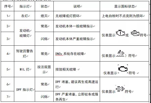 (4)行駛過程中,DPF狀態指示燈點亮后,用戶所需采取的措施: